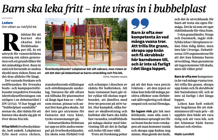 Debattartikeln publicerades i Dagens Nyheter. Därefter har de positiva effekterna av kamplek uppmärksammats i i stort sett alla lokaltidningar, samt i Expressen, TV4 Nyhetsmorgon och SVT Sverige Live.